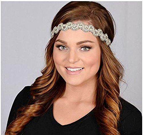 The Darlene hair jewelry consists of an intertwining infinity like design. The center of each infinity design has a tear drop crystal in it's featured color. Circled with matching seed beads and looping rhinestones. The outer edge has a finished trim of seed beads. Backed by non-slip and no-tangle black velvet. Model Wearing Silver Headband